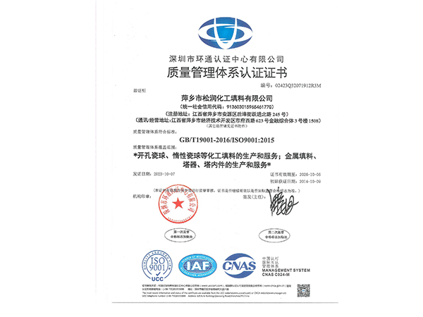 萍鄉市松潤化工填料有限公司位于江西省萍鄉市國家經濟開發(fā)區西區,是專業生產、經營陶瓷、聚丙烯、金屬填料、塔內件、水處理濾板、濾管、濾料、瓷球、分子篩、催化劑、活性炭、蜂窩陶瓷、瓷質耐磨托輥等系列產品的民營企業。所有產品由國家非金屬材料和設備質量監(jiān)測中心監(jiān)測檢驗認證。公司現有員工280人,其中有高、中級職稱技術人員36人。工藝先進,技術力量雄厚,產品質量可靠,配...
